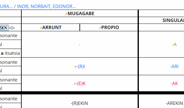 Con el sistema de colores de euskaragara.net, se entiende mejor cómo se forman los aditz y su relación con la deklinabide, además de ser muy útil para, más adelante, entender otros conceptos.