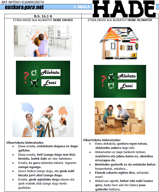 ♦ Arian: es moderno y bastante completo. Es de los mas usados y faciles de obtener, ya que lo distribuye Elkar. Tiene audios. Los ejercicios son sencillos y repetitivos. Es recomendable hacer todos A1.1, A1.2, A2.1, A2.2, B1.1 (incluyen 2 libros: ikaslearen liburua y lan koadernoa. Uno es el refuerzo del otro, aunque el lan koaderno tiene mas teoría)