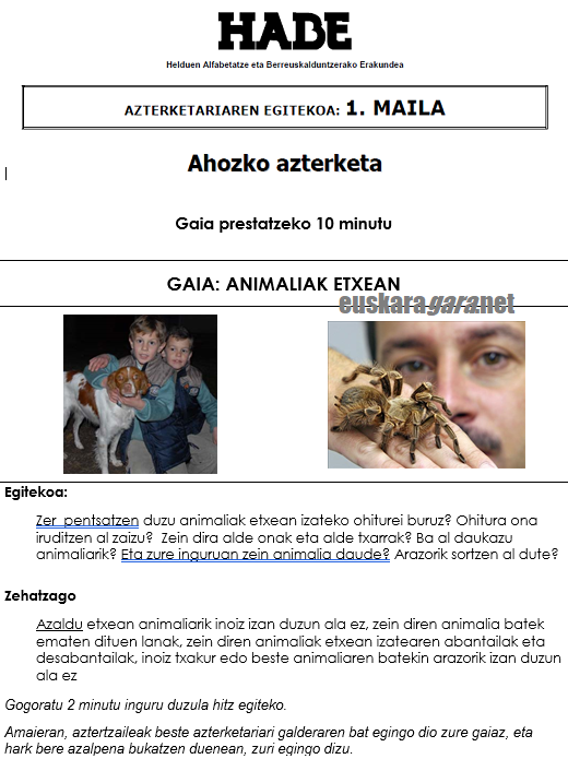 - Hablar tú solo (bakarrizketa o monólogo), sobre la ficha que ten han dado: (Cada alumno 3-4´+ una pregunta al otro examinado sobre lo que se acaba de hablar). Normalmente, hay 2-3 imagenes, 3-4 lineas escritas para que leas y algunas preguntas. Sueles tener en torno a 10´para preparalo.