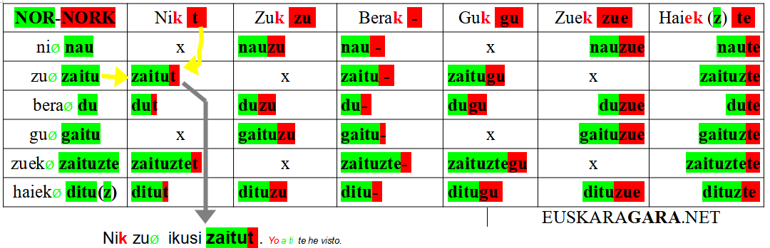 En euskaragara.net usamos el sistema de colores para que comprendas como se forman los Aditz.